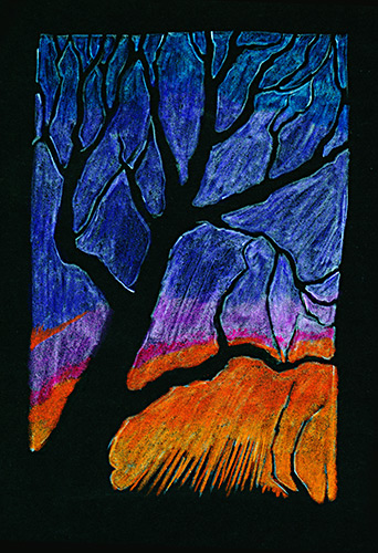 colored pencil on black paper